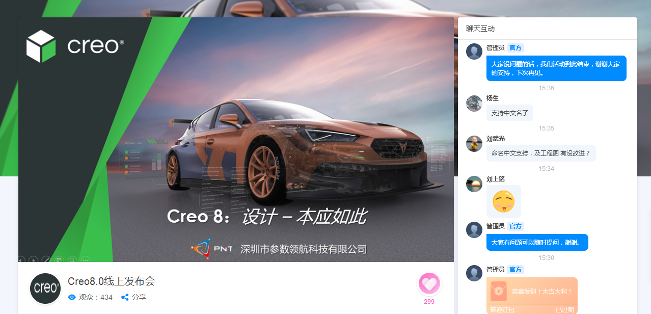 由深圳市尖尖科技有限公司(SZPNT)舉辦的(de)Creo 8.0線上(sh≤¶$×àng)發布會(huì)于2021年(nián)7月(yuè)16日(r와←¥)下(xià)午14:00時(shí)如(rú'β)期舉行(xíng),本次直播會(huì)重點針對(duì)Creo 8.0産 ±←品新功能(néng)做(zuò)了(le)詳§>細的(de)介紹和(hé)演示。
